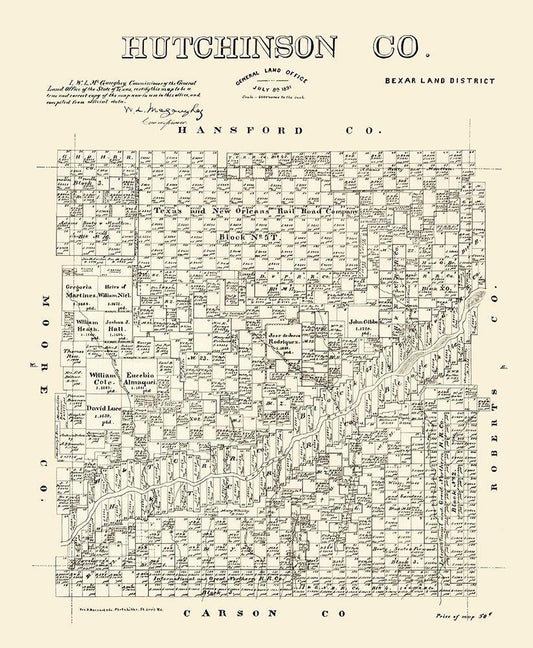 Hutchinson County Texas - McGaughey 1891 White Modern Wood Framed Art Print with Double Matting by McGaughey