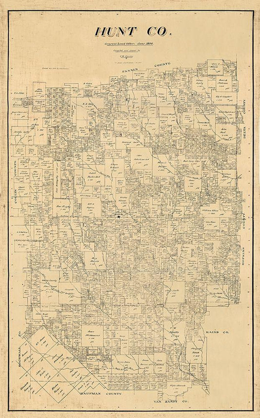 Hunt County Texas - Pressler 1894 White Modern Wood Framed Art Print with Double Matting by Pressler