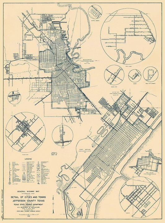 Jefferson Texas - Highway Dept 1936 White Modern Wood Framed Art Print with Double Matting by Highway Dept
