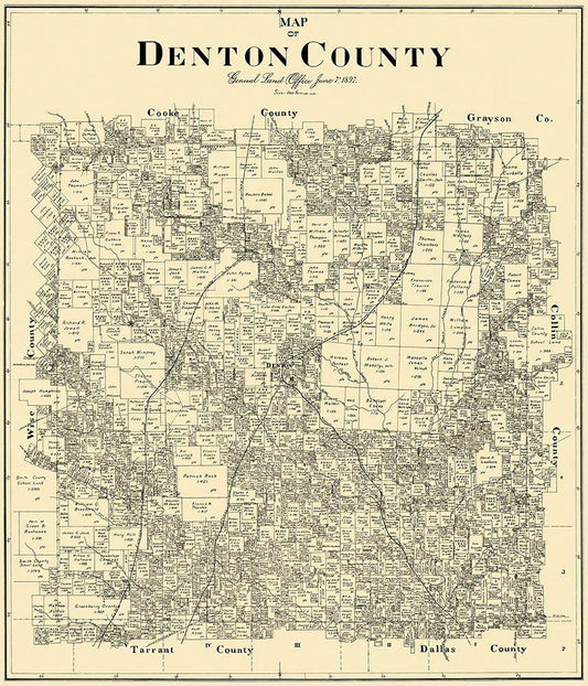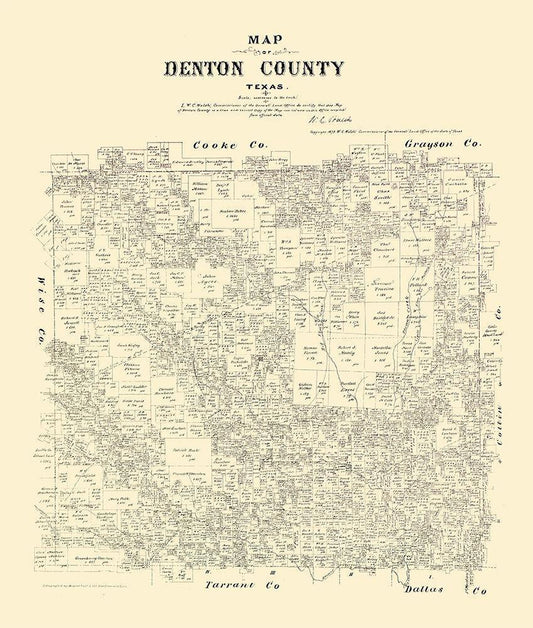 Denton Texas Landowner - General Land Office 1897 White Modern Wood Framed Art Print with Double Matting by Land Office