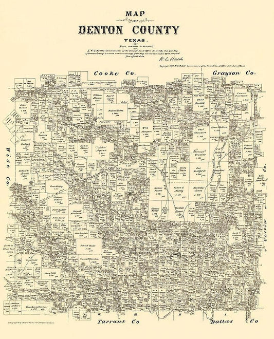Denton County Texas - Walsh 1879 White Modern Wood Framed Art Print with Double Matting by Walsh