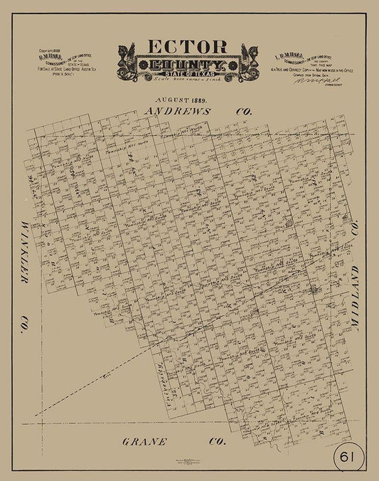 Ector County Texas - Hall 1889 White Modern Wood Framed Art Print with Double Matting by Hall