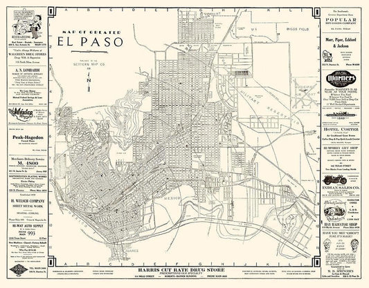 El Paso Texas - Western 1938 White Modern Wood Framed Art Print with Double Matting by Western