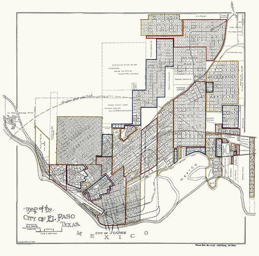 El Paso County Texas - Abrams 1893 White Modern Wood Framed Art Print with Double Matting by Abrams