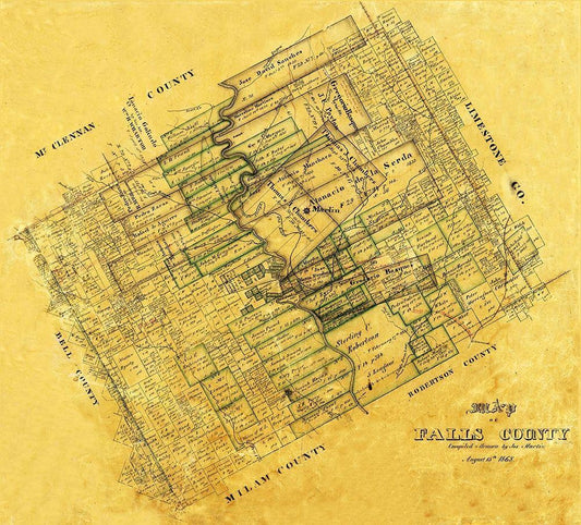 Falls County Texas - Martin 1868 White Modern Wood Framed Art Print with Double Matting by Martin