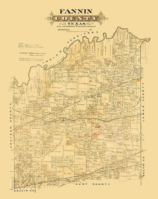 Fannin County Texas - Marshall 1870 White Modern Wood Framed Art Print with Double Matting by Marshall