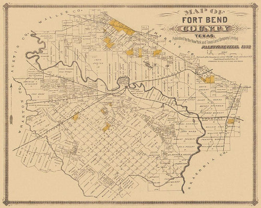 Fort Bend Texas Landowner - Land Office 1882 White Modern Wood Framed Art Print with Double Matting by Land Office