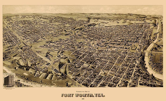 Fort Worth Texas - Wellge 1891 White Modern Wood Framed Art Print with Double Matting by Wellge