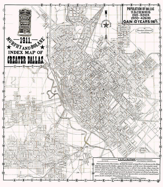 Dallas Texas - Murphy 1911 White Modern Wood Framed Art Print with Double Matting by Murphy
