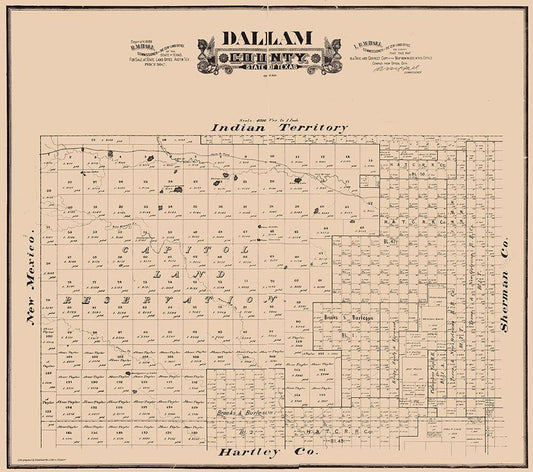 Dallam County Texas - Hall 1888 White Modern Wood Framed Art Print with Double Matting by Hall