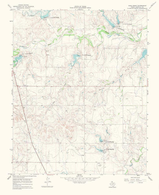 Dads Creek Texas Quad - USGS 1969 White Modern Wood Framed Art Print with Double Matting by USGS