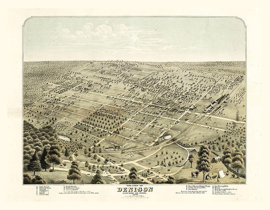 Denison Texas - Pearce 1873 White Modern Wood Framed Art Print with Double Matting by Pearce