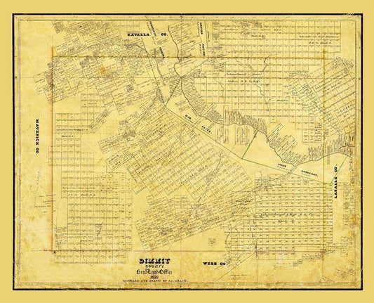 Dimmit County Texas - Walsh 1879 White Modern Wood Framed Art Print with Double Matting by Walsh