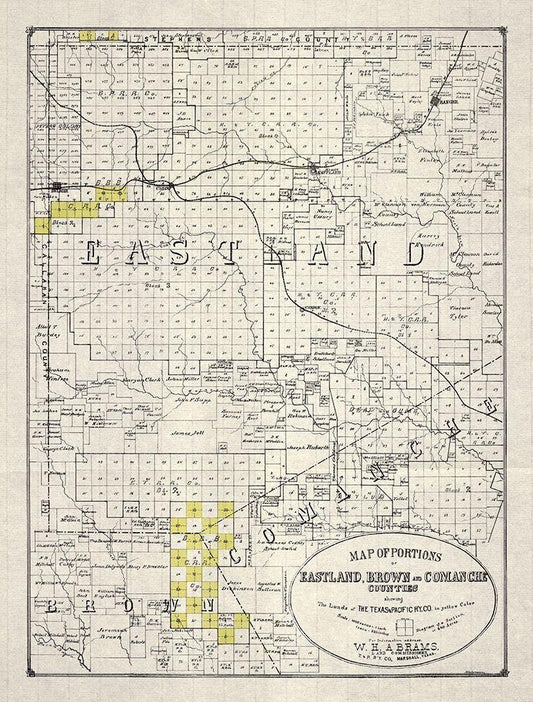Eastland, Brown, Comanche County Texas -1890 White Modern Wood Framed Art Print with Double Matting by Unknown