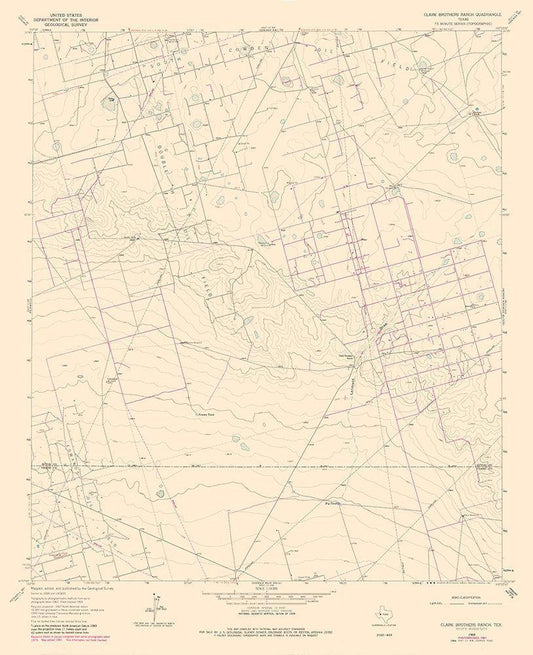 Clark Brothers Ranch Texas Quad - USGS 1981 White Modern Wood Framed Art Print with Double Matting by USGS