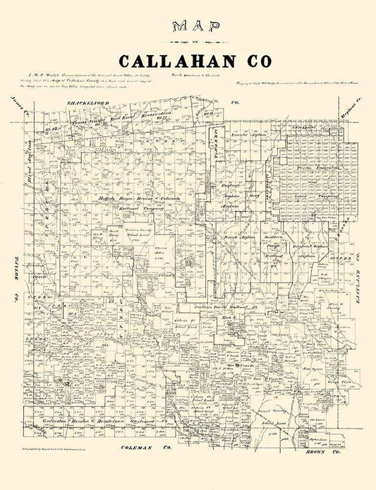 Callahan County Texas - Walsh 1879 White Modern Wood Framed Art Print with Double Matting by Walsh