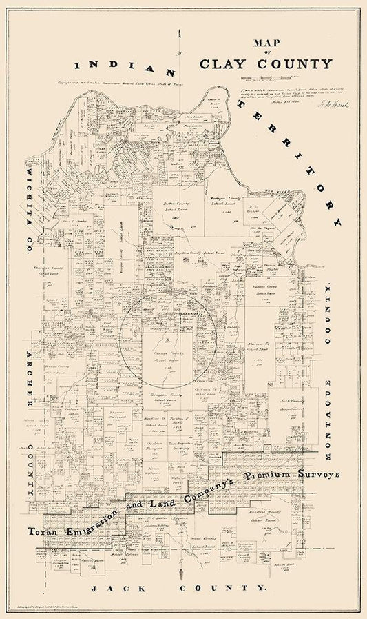 Clay County Texas - Walsh 1880 White Modern Wood Framed Art Print with Double Matting by Walsh