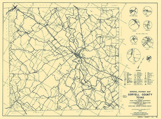 Coryell Texas Highway - Highway Dept 1936 White Modern Wood Framed Art Print with Double Matting by Highway Dept