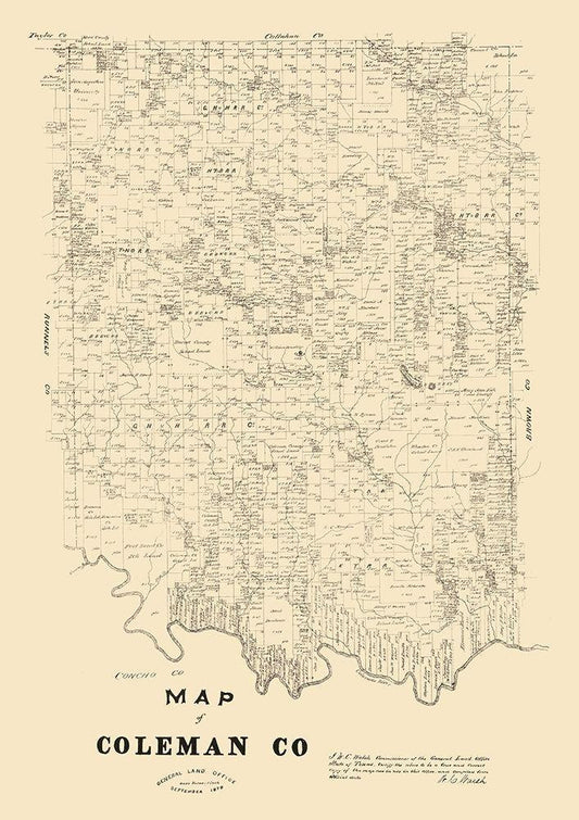 Coleman County Texas - Walsh 1879 White Modern Wood Framed Art Print with Double Matting by Walsh