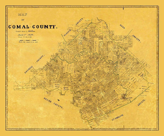 Comal County Texas - Groos 1874 White Modern Wood Framed Art Print with Double Matting by Groos