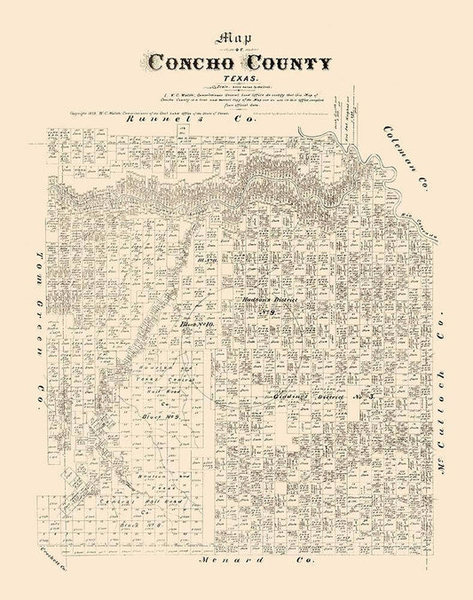 Concho County Texas - Walsh 1879 White Modern Wood Framed Art Print with Double Matting by Walsh