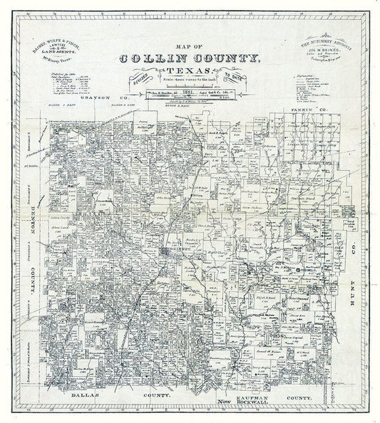 Collin County Texas - Gast 1881 White Modern Wood Framed Art Print with Double Matting by Gast