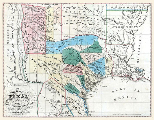 Texas - Colorado River - Konen Marche 1835 White Modern Wood Framed Art Print with Double Matting by Marche