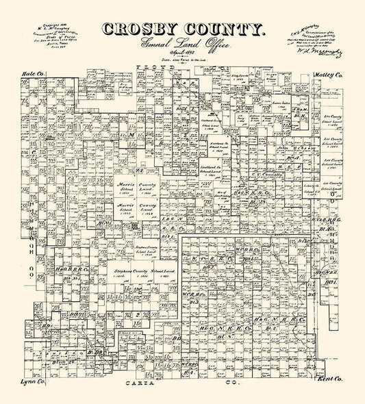 Crosby County Texas - McGaughey 1892 White Modern Wood Framed Art Print with Double Matting by McGaughey
