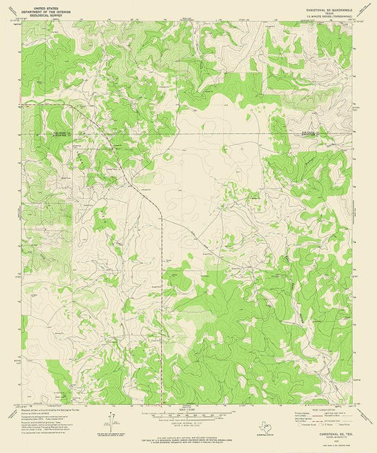 Christoval SE Texas Quad - USGS 1972 White Modern Wood Framed Art Print with Double Matting by USGS