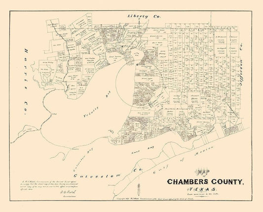 Chambers County Texas - Walsch 1879 White Modern Wood Framed Art Print with Double Matting by Walsh