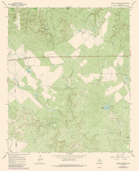 Cedar Mountain Texas Quad - USGS 1981 White Modern Wood Framed Art Print with Double Matting by USGS