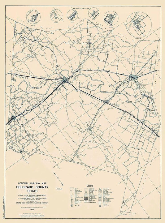 Colorado Texas Highway - Highway Dept 1936 White Modern Wood Framed Art Print with Double Matting by Highway Dept