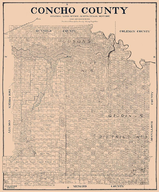 Concho County Texas - Rosenberg 1897 White Modern Wood Framed Art Print with Double Matting by Rosenberg