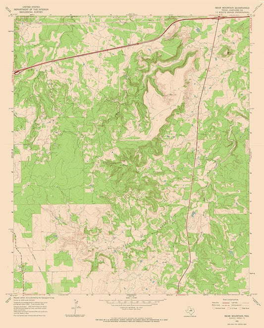Bear Mountain Texas Quad - USGS 1966 White Modern Wood Framed Art Print with Double Matting by USGS