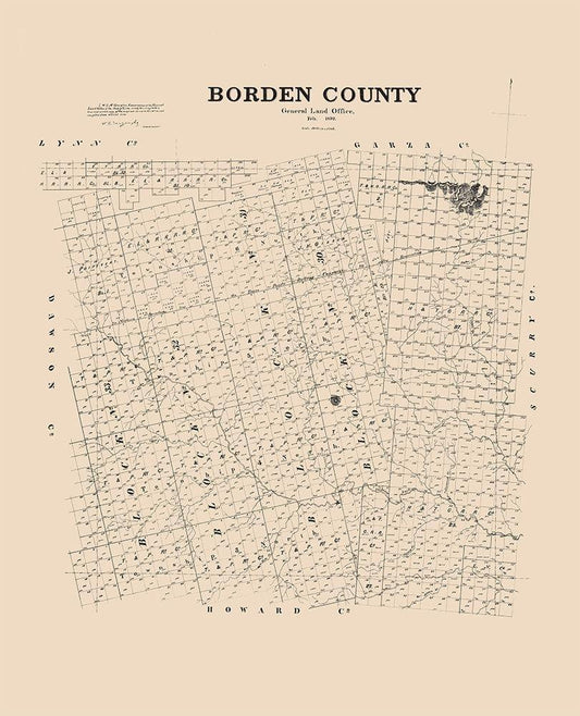 Borden County Texas - 1892 White Modern Wood Framed Art Print with Double Matting by Unknown