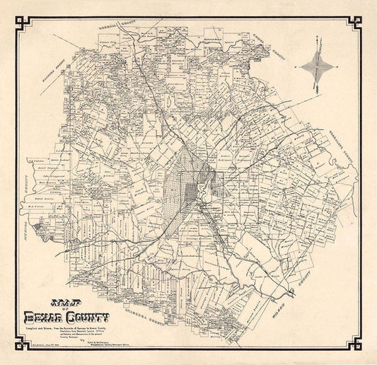Bexar County Texas - 1887 White Modern Wood Framed Art Print with Double Matting by Unknown