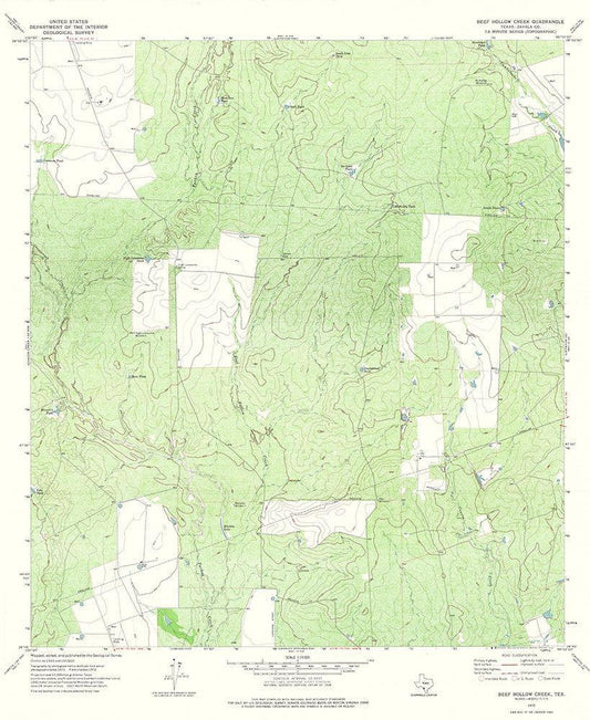 Beef Hollow Creek Texas Quad - USGS 1972 White Modern Wood Framed Art Print with Double Matting by USGS