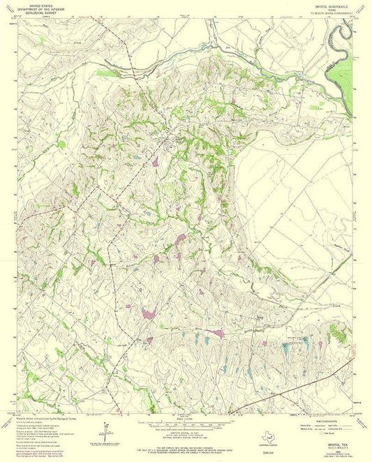 Bristol Texas Quad - USGS 1962 White Modern Wood Framed Art Print with Double Matting by USGS