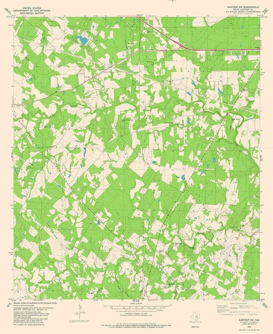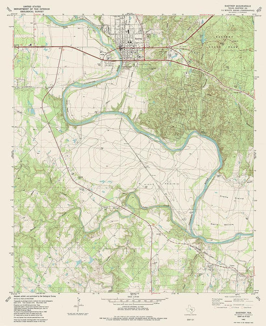 Bastrop Texas Quad - USGS 1982 White Modern Wood Framed Art Print with Double Matting by USGS