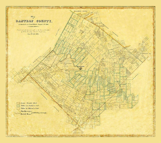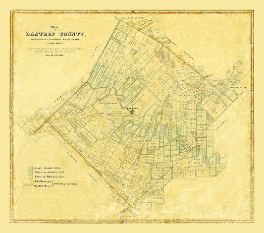 Bastrop County Texas - 1861 White Modern Wood Framed Art Print with Double Matting by Unknown