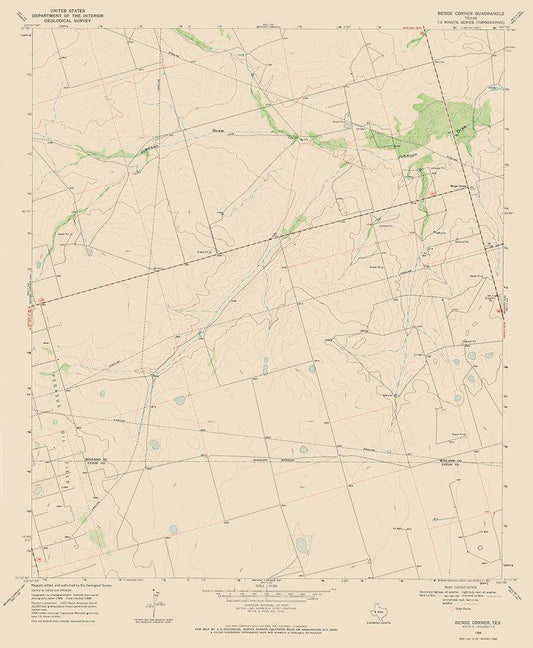 Benge Corner Texas Quad - USGS 1968 White Modern Wood Framed Art Print with Double Matting by USGS