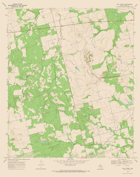Bull Creek Texas Quad - USGS 1969 White Modern Wood Framed Art Print with Double Matting by USGS