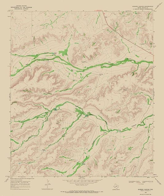 Busher Canyon Texas Quad - USGS 1968 White Modern Wood Framed Art Print with Double Matting by USGS