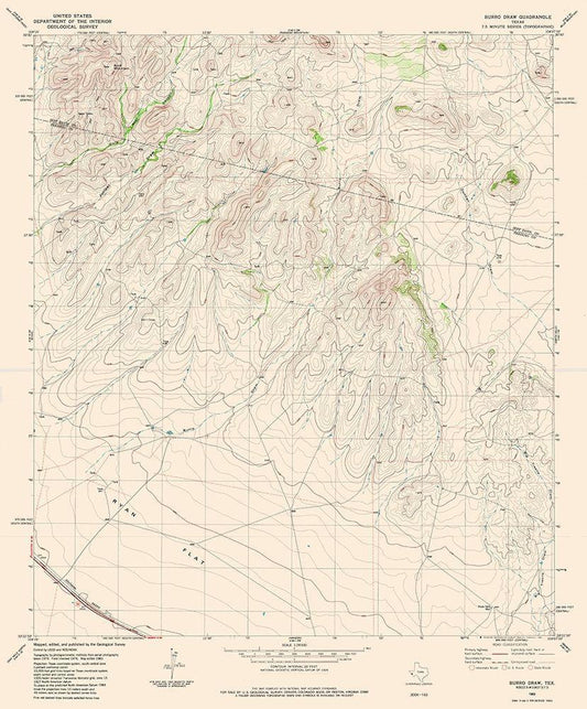 Burro Draw Texas Quad - USGS 1983 White Modern Wood Framed Art Print with Double Matting by USGS
