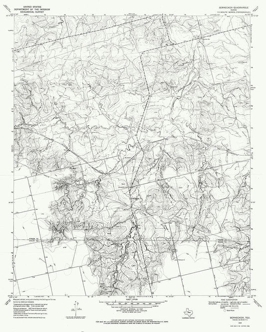 Bernecker Texas Quad - USGS 1969 White Modern Wood Framed Art Print with Double Matting by USGS