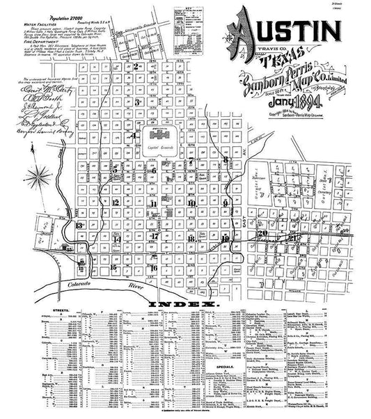 Austin Texas - Sanborn 1894 White Modern Wood Framed Art Print with Double Matting by Sanborn