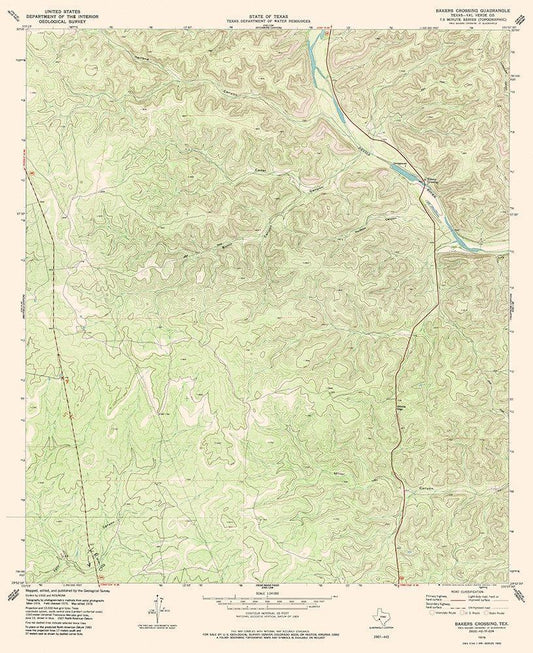 Bakers Crossing Texas Quad - USGS 1979 White Modern Wood Framed Art Print with Double Matting by USGS