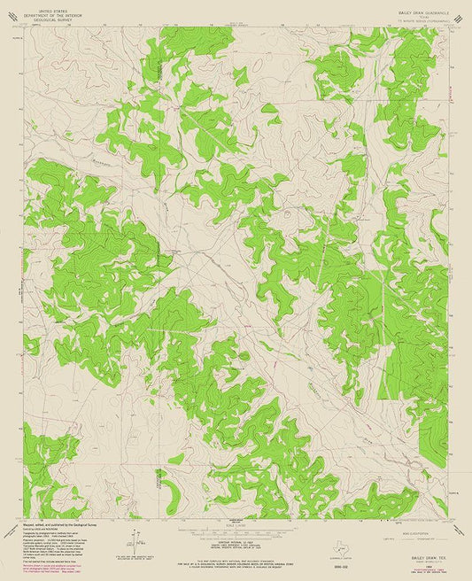 Bailey Draw Texas Quad - USGS 1964 White Modern Wood Framed Art Print with Double Matting by USGS