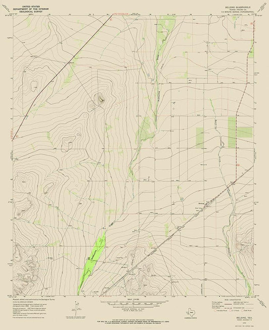Belding Texas Quad - USGS 1970 White Modern Wood Framed Art Print with Double Matting by USGS