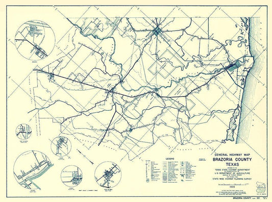 Brazoria Texas Highway - Highway Dept 1936 White Modern Wood Framed Art Print with Double Matting by Highway Dept
